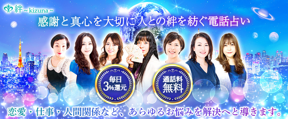 多種多様の悩み事を聞いてきた実績豊富な占い師が多数在籍している電話占い絆(kizuna)。